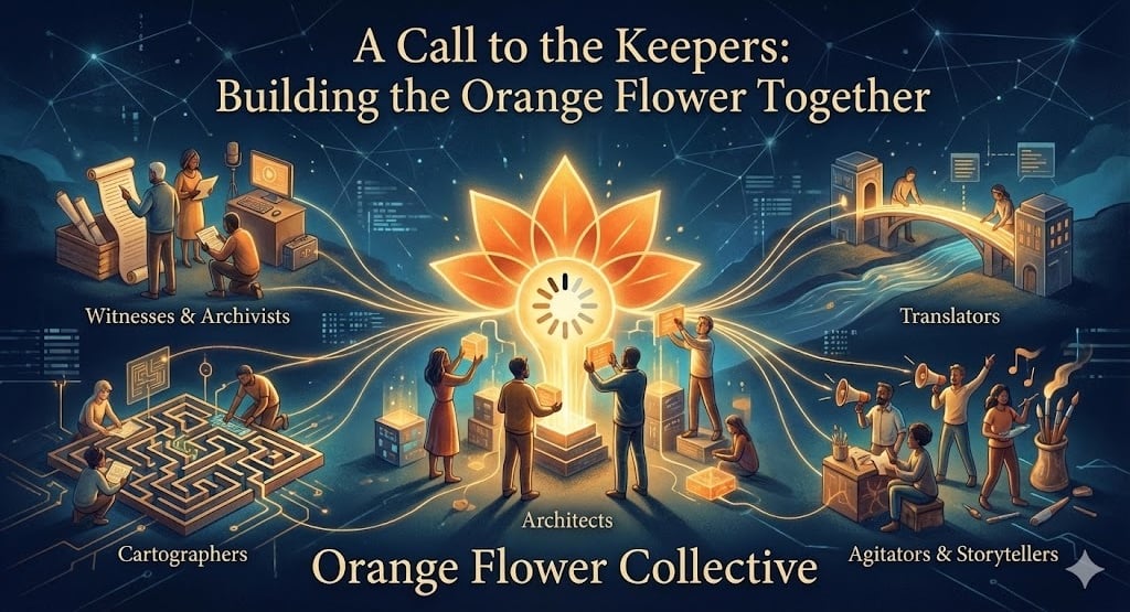 Orange Flower is more than a vow—it's a network of keepers. From Witnesses and Cartographers to Storytellers and Architects, find where your unique skills meet the urgent needs of the movement for digital rights.